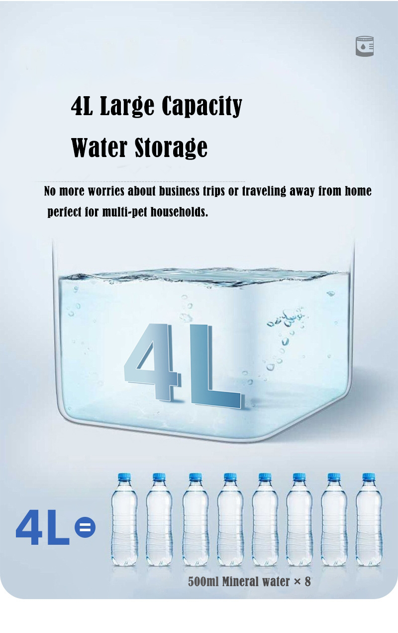 - 24/7 Fresh Water Supply: Equipped with a large-capacity reservoir , it holds enough water to keep your pet hydrated for days—perfect for work trips, short vacations, or long workdays.